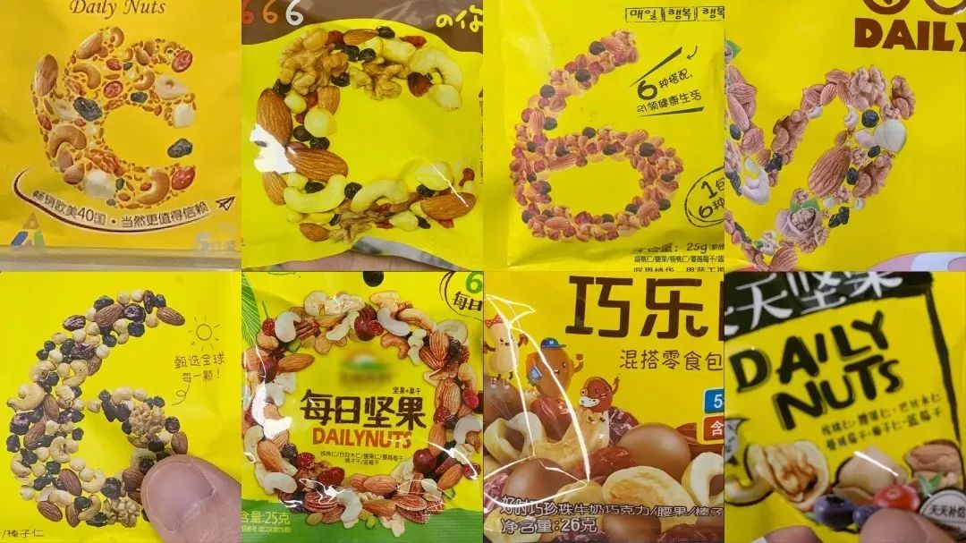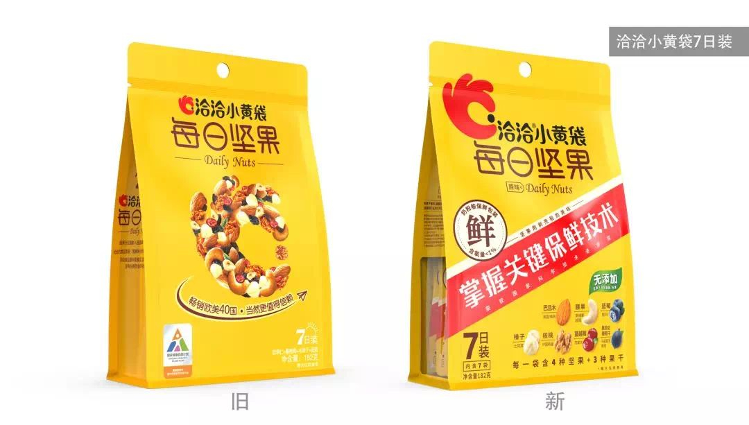 “洽洽每日坚果”在一片包装设计大同小异,对产品特点表现也基本相同,
