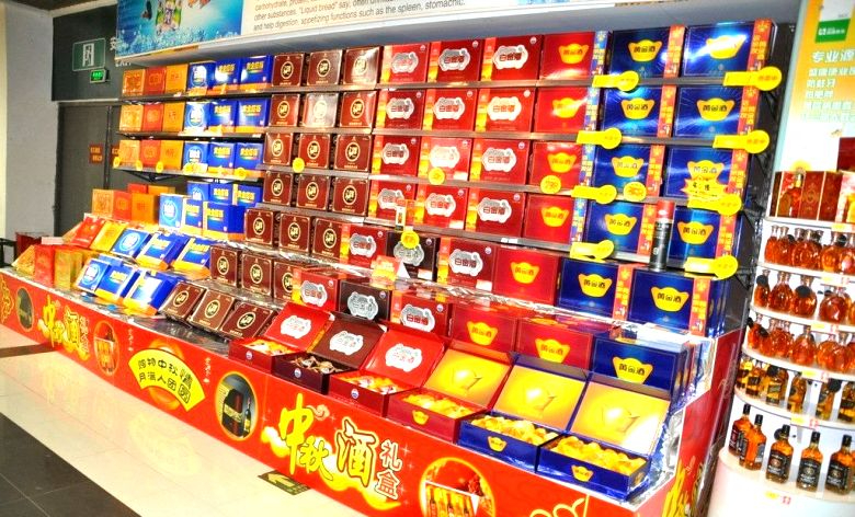 比如“黄金酒”的蓝色包装在一片红色海洋里就能获得陈列优势。
