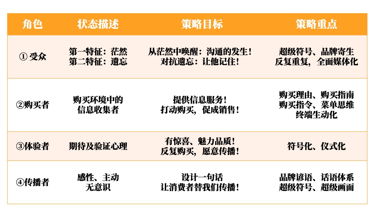 按受众、购买者、体验者和传播者四个角色