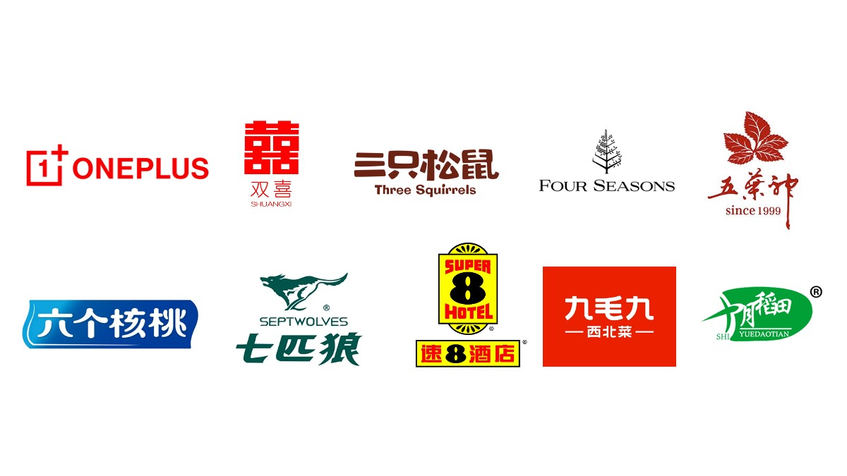 六个核桃饮料、七匹狼服饰、八天连锁酒店、九毛九餐厅、十月稻田农产品。