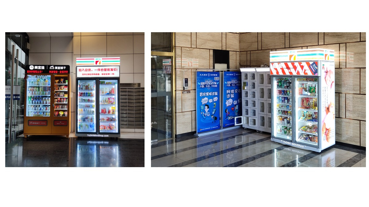 一台机器是一家小便利店,多台机器组合起来,所销售的物品从饮料、零食扩充到酒水饮料、速食冻品、