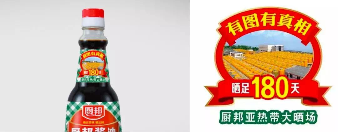 除此之外,在瓶身上设计的“有图有真相,晒足180天”提供了产品购买理由。