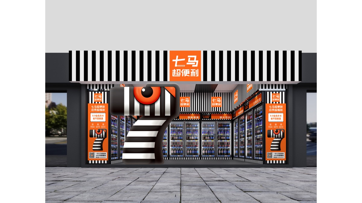 于是我们将“7”字和“斑马”结合起来,创意了七马超便利的超级符号——“7字斑马”。